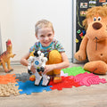 Walking and playing on the mats stimulates all the puppies' senses, which perfectly starts the development of good balance, motor skills, self-confidence, and courage. Puppies do not hesitate at all when moving on different surfaces; they take it naturally and absolutely do not solve any unevenness, grating stairs, platforms, and other surfaces.