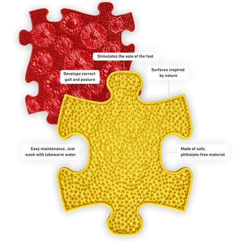 Already, the first contact of the foot with the mat forms your child's arch. This will affect their entire physiological development. The variety of surfaces on which they walk is most important for forming the arch and developing correct walking.